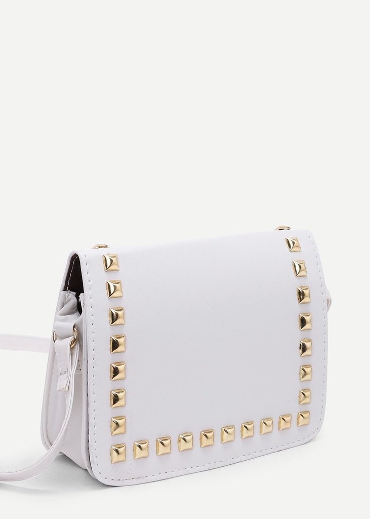 • 2 Way Top Zip across Closure, Front and side zipper pockets, Studs on bottom